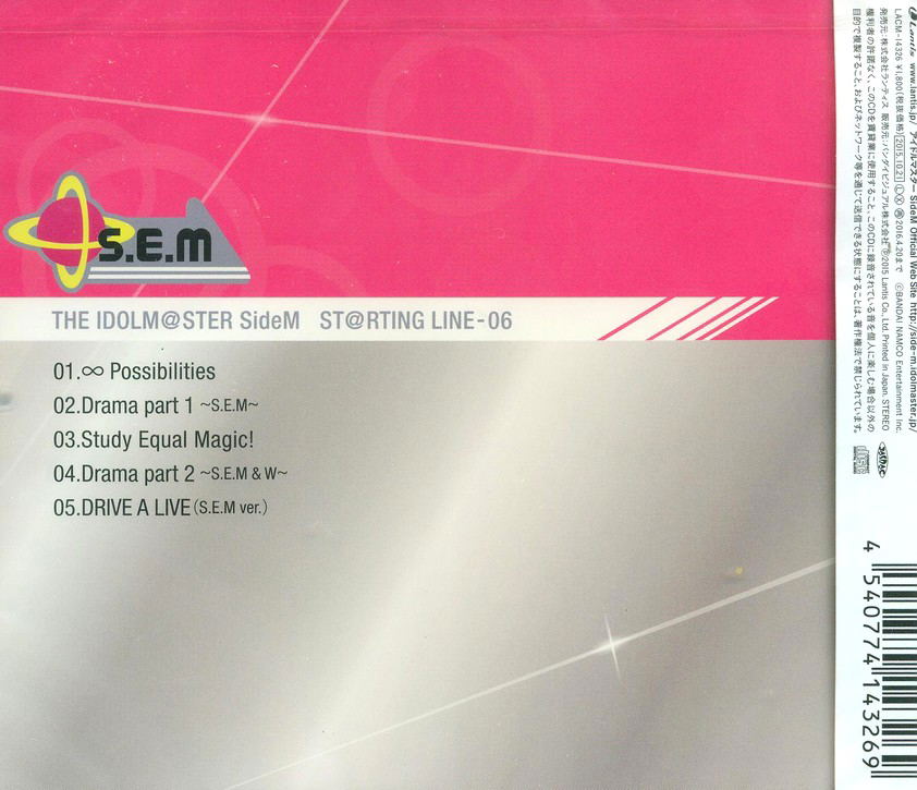 The idolm@ster sidem st@rting line06 sem;THE IDOLM@STER SideM ST@RTING LINE06 SEM is the 6th CD in the THE IDOLM@STER SideM ST@RTING LINE series released on October 21st, 15 at the price of ¥1,944 by Lantis Co, Ltd It features two new songs by Michio Hazama, Rui Maita, and Jiro Yamashita as the unit SEM along with two drama tracks with the 2nd part with another idol unit WThe idolm@ster sidem st@rting line07 sai;